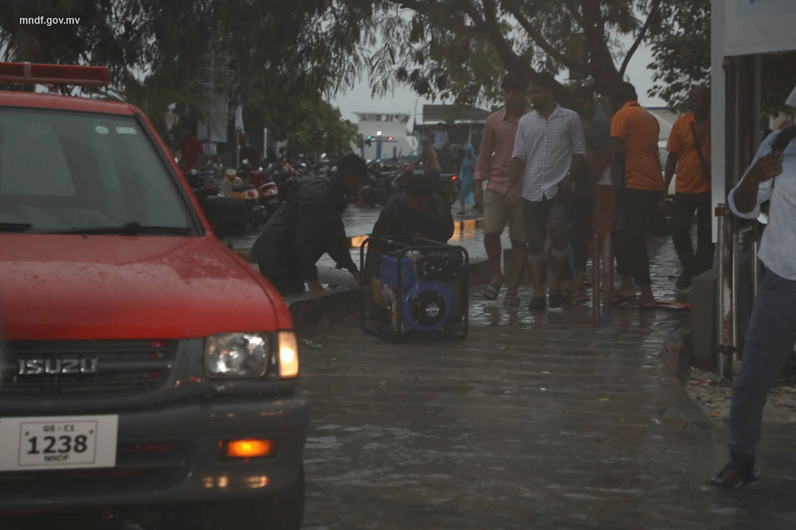 އެމްއެންޑީއެފުން ބުނީ ޕަންޕު ޖައްސައިގެން ފެން ހިންދުމުގެ މަސައްކަތް ކުރަމުންދާ ކަމަށެވެ. އަދި މިހާތަނަށް 14 ގެއެއްގައި ވެލިބަސްތާ ޖަހާފައިވާ ކަމަށް އެމްއެންޑީއެފުން މައުލޫމާތުދެއެވެ.