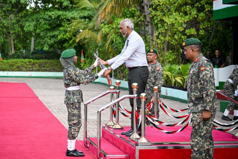 މޯލްޑިވްސް ނޭޝަނަލް ޑިފެންސް ފޯސްގެ ކޮލެޖް އޮފް ޑިފެންސް އެންޑް ސެކިއުރިޓީ ސްޓަޑީސްގެ ދަށުން ހިންގާ 'ދަ ބޭސިކް ސްކޫލް'ގެ ފަރާތުން ކުރިއަށްގެންދިޔަ 70 ވަނަ އަސާސީ ތަމްރީނު ކޯހުގެ ދަރިވަރުންނަށް ހުވައިލައިދިނުމާއި، ބަޑި ހަވާލުކުރުމުގެ ރަސްމިއްޔާތުގައި ރައީސް އަދި ސިފައިންގެ އެންމެ މަތީ ވެރިޔާ ޑޮކްޓަރ މުހައްމަދު މުއިއްޒު، ބައިވެރިވެވަޑައިގެންފިއެވެ.