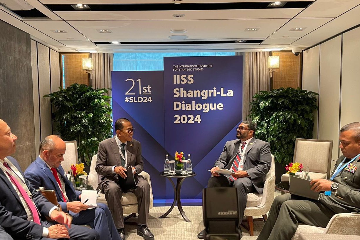 ދުނިޔޭގެ އެކި ގައުމުތަކުގެ ޑިފެންސް މިނިސްޓަރުންނާއި މިލިޓަރީގެ ޗީފުންނަށް ހާއްސަކޮށް ކޮންމެ އަހަރަކު ވެސް ސިންގަޕޫރުގައި ބާއްވާ ޝަންގްރިއްލާ ޑައިލޮގްގެ މިއަހަރުގެ ބައްދަލުވުމުގެ ތެރެއިން މެލޭޝިޔާގެ ޑިފެންސް މިނިސްޓަރު، މޮހައްމަދު ޚާލިދް ބިން ނޫރައްދީންއާ ރާއްޖޭގެ ޑިފެންސް މިނިސްޓަރު، ގައްސާން މައުމޫން ބައްދަލު ކުރައްވައިފި އެވެ.