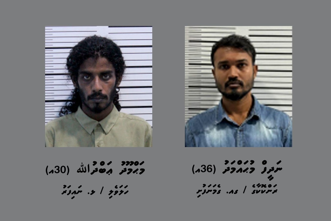 މި މައްސަލައާ ގުޅިގެން ފުލުހުން ހޯދަމުންދަނީ ނަދީފް މުޙައްމަދު، ރަންކޮކާގެ / ގއ. ގެމަނަފުށި (36އ) އާއި މަޙްމޫދު ޢަބްދުﷲ، ހަލަވެލި / ޅ. ނައިފަރު (30އ) އެވެ.