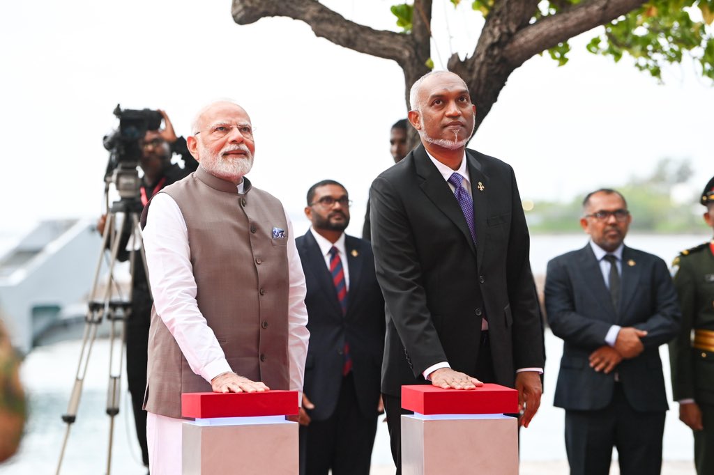 ރައީސުލްޖުމްހޫރިއްޔާ ޑރ. މުޙައްމަދު މުޢިއްޒު އަދި އިންޑިއާގެ ބޮޑުވަޒީރު ނަރޭންދްރަ މޯދީ، ދޮށިމޭނާ ބިލްޑިންގ ރަސްމީކޮށް ހުޅުއްވައިދެއްވައިފިއެވެ.