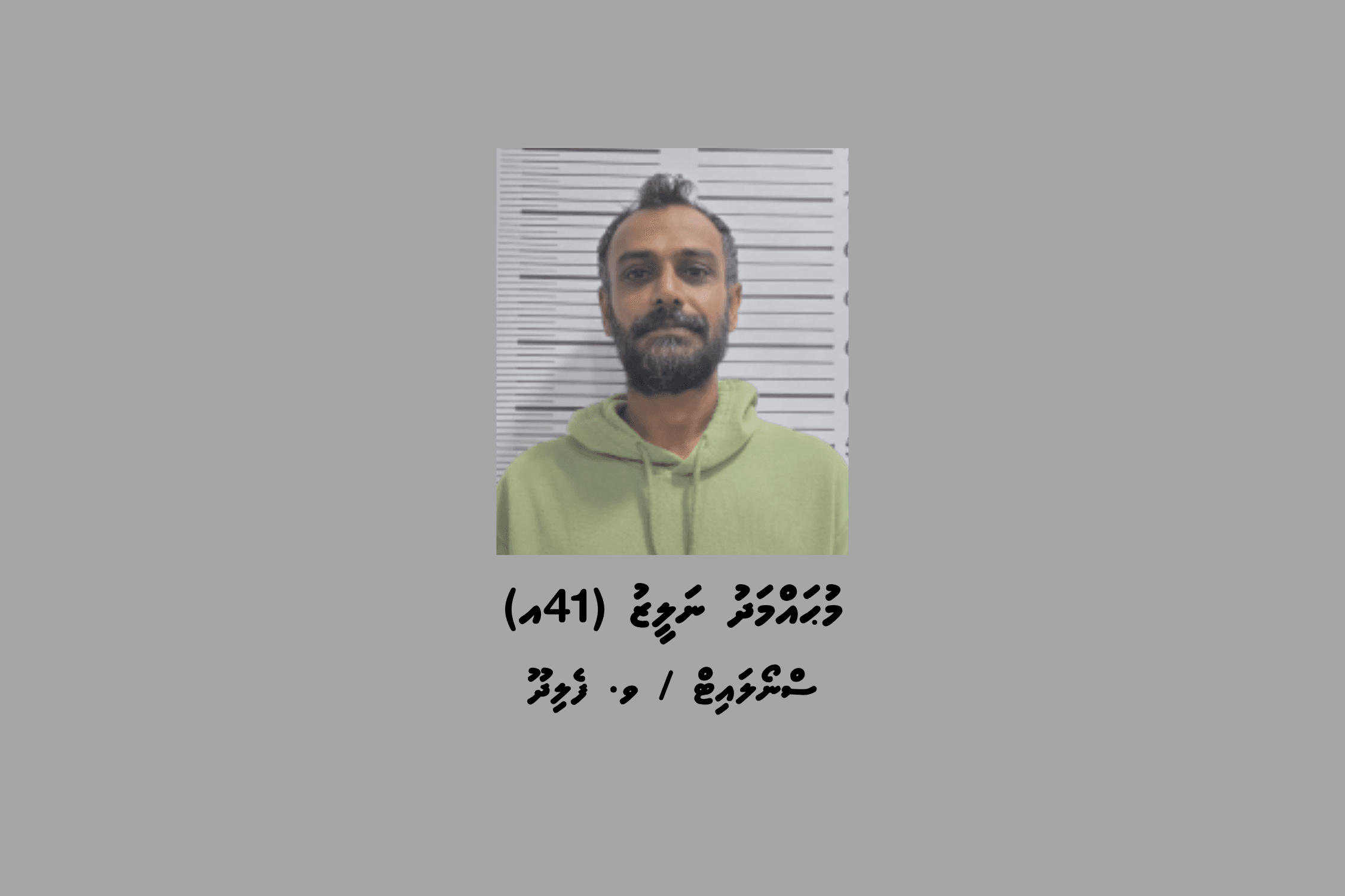އާދީއްތަ ދުވަހު ފޯކައިދޫ ޕޮލިހާއި ފުލުހުންގެ ކައުންޓަ-ނާކޮޓިކްސް އިންޓެލިޖެންސް ގުޅިގެން ހިންގި އޮޕަރޭޝަންގައި ހައްޔަރުކޮށްފައި ވަނީ ވ. ފެލިދޫ، ސްނޯލައިޓް، މުޙައްމަދު ނަލީޒު، 41، އެވެ.