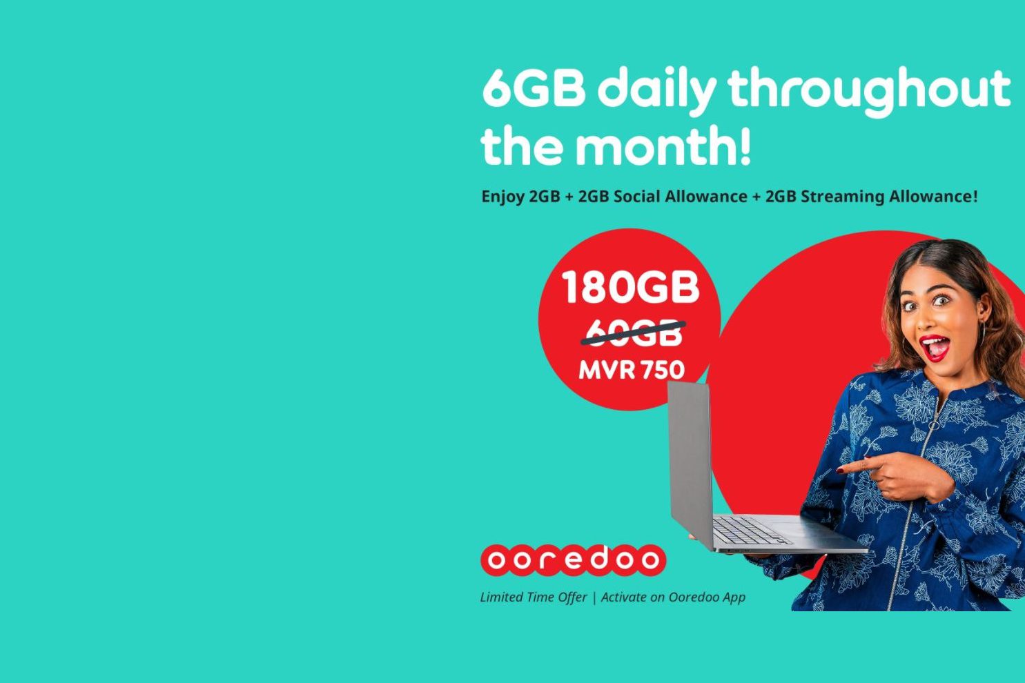 އެގޮތުން މިއަދު ފެށި މި ޕްރޮމޯޝަންގައި މަހެއްގެ މައްޗަށް 180 ޖީބީ އާއި ހަމައަށް ޑޭޓާ ލިބިގެން ދާނެ އެވެ. މި ޕެކޭޖުގައި ކޮންމެ ދުވަހަކު ހަ ޖީބީ ޑޭޓާ ލިބޭނެ އެވެ.