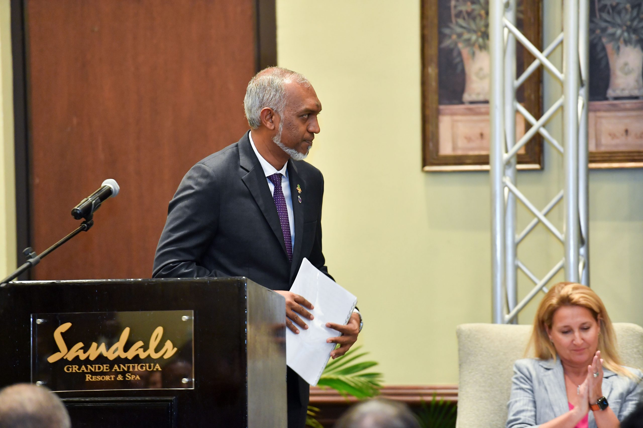 ރައީސުލްޖުމްހޫރިއްޔާ މިހެން ވިދާޅުވީ މިއަދު އެންޓީގާ އެންޑް ބާބިޔުޑާގައި ބޭއްވި ސިޑްސް ގްލޯބަލް ބިޒްނަސް ނެޓްވޯކް (ޖީބީއެން) ފޯރަމް 2024 ގެ ނިންމުމުގެ ރަސްމިއްޔާތުގައި ވާހަކަފުޅު ދައްކަވަމުން ނެވެ.
