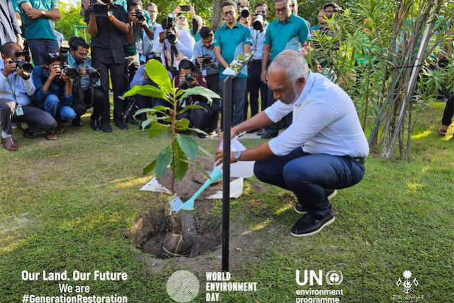 ދުނިޔޭގެ ތިމާވެށީގެ ދުވަހުގެ މުނާސަބަތާއި ގުޅިގެން، ސަރުކާރުގެ މެނިފެސްޓޯގައި ހިމެނޭ މުހިންމު ރިޔާސީ ވައުދެއްކަމުގައިވާ، ފަސް މިލިއަން ގަސްއިންދުމުގެ ޕްރޮގްރާމް، ރައީސުލްޖުމްހޫރިއްޔާ ޑޮކްޓަރ މުޙައްމަދު މުޢިއްޒު އަދި އެމަނިކުފާނުގެ އަނބިކަނބަލުން ސާޖިދާ މުޙައްމަދު، އިފުތިތާހުކޮށްދެއްވައިފި އެވެ.