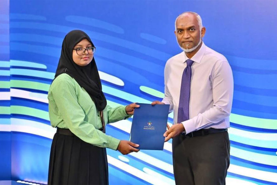 ރައީސް ޑރ. މުހައްމަދު މުއިއްޒު އަދި އެޑިޔުކޭޝަން މިނިސްޓަރ ޑރ. އިސްމާއިލް ޝަފީއުގެ އިތުރުން އެހެން މިނިސްޓަރުންނާއި ދައުލަތުގެ އިސްވެރިން ބައިވެރިވެވަޑައިގެންނެވި މި ރަސްމިއްޔާތުގައި، ކޮންމެ ސްކޫލަކުން އެއް ދަރިވަރަކަށް ސްކޮލަރޝިޕްގެ ލިޔުން ހަވާލުކުރެއްވީ ރައީސް މުއިއްޒެވެ.