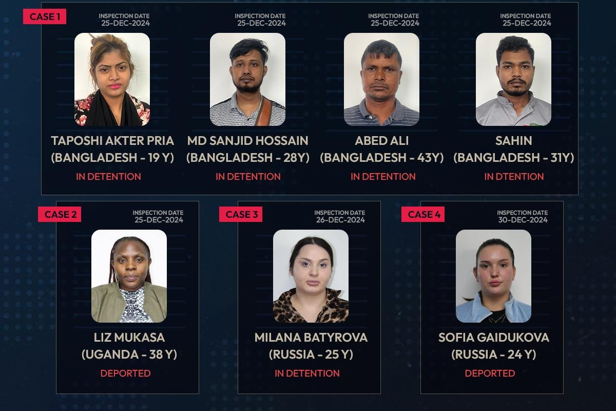 އަދި މި މައްސަލަތައް އިތުރަށް ތަހުގީގު ކުރުމަށް ފަހު ދެ އަންހެނަކު މިހާރު ޑީޕޯޓުކޮށް އަނެއް ފަސް މީހުން ޑިޕޯޓުކުރުމުގެ މަސައްކަތް ކުރަމުން އަންނަ ކަމަށް އިމިގްރޭޝަނުން ބުންޏެވެ.
