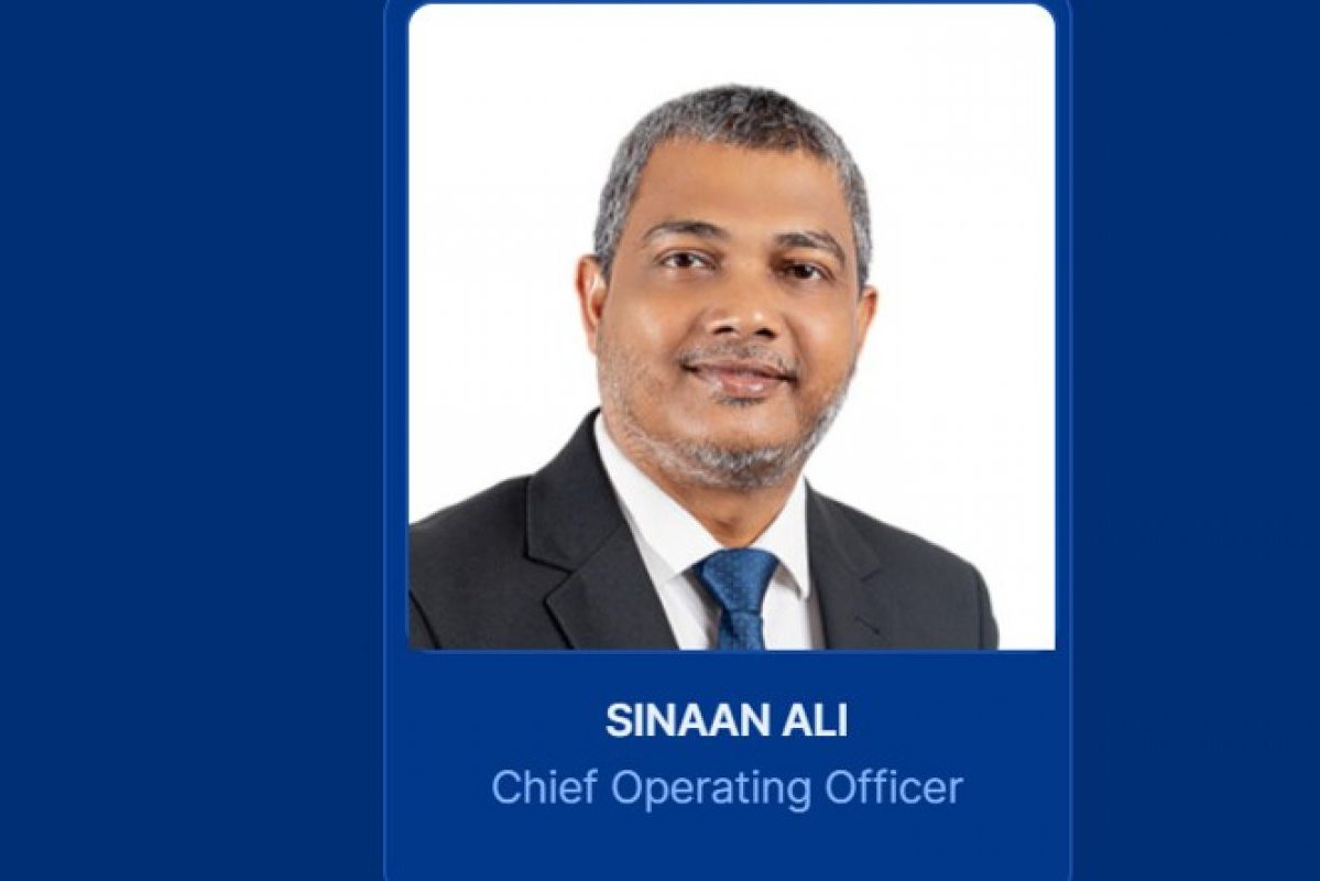 މޯލްޑިވްސް ޓްރާންސްޕޯޓް އެންޑް ކޮންޓްރެކްޓިންގ ކޮމްޕެނީ (އެމްޓީސީސީ) ގެ ޗީފް އޮޕަރޭޓިންގ އޮފިސަރ (ސީއޯއޯ) ގެ މަޤާމަށް ސިނާން ޢަލީ ޢައްޔަންކޮށްފިއެވެ. އެނގިފައިވާ ގޮތުގައި އޭނާ މި މަޤާމަށް ޢައްޔަންކޮށްފައިވަނީ މިދިޔަ ހަފުތާގެ ތެރޭގައެވެ.