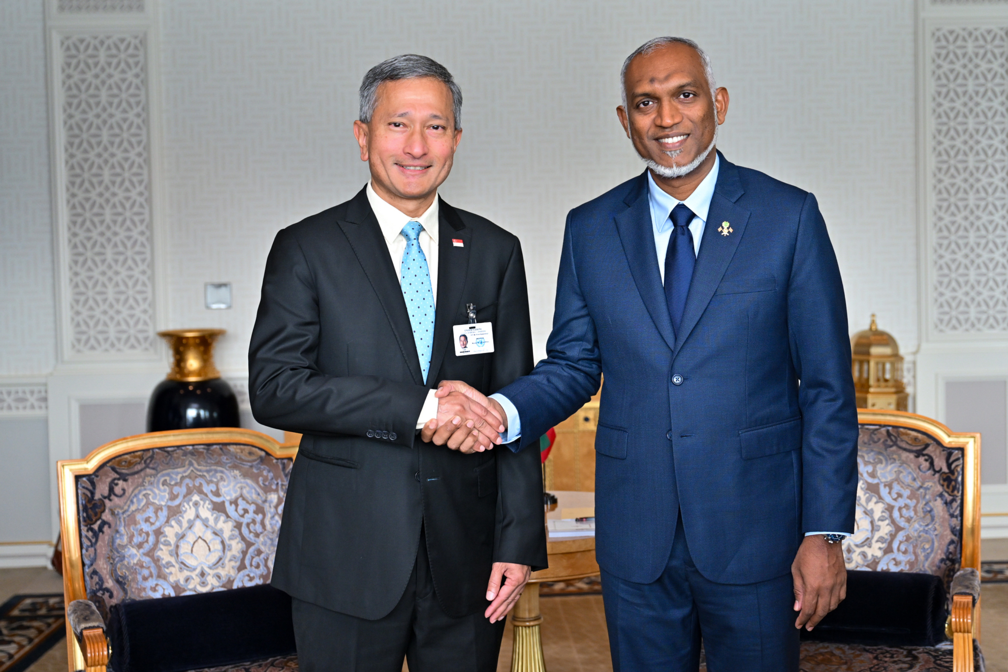 ދެ ގައުމުން ސިޔާސީ ގުޅުން ގާއިމުކުރިތާ މިއަށް 50 އަހަރު ފުރުމާ ގުޅިގެން ރައީސް ވަނީ ސަރުކާރާއި ރައްޔިތުންގެ ނަމުގައި، ސިންގަޕޫރުގެ ރައީސް ތަރްމަން ޝަންމުގަރަނަމާއި ބޮޑުވަޒީރު ލޯރެންސް ވޮންގްއަށް އަށް ތަހުނިޔާ ވެސް ފޮނުއްވައިފަ އެވެ.