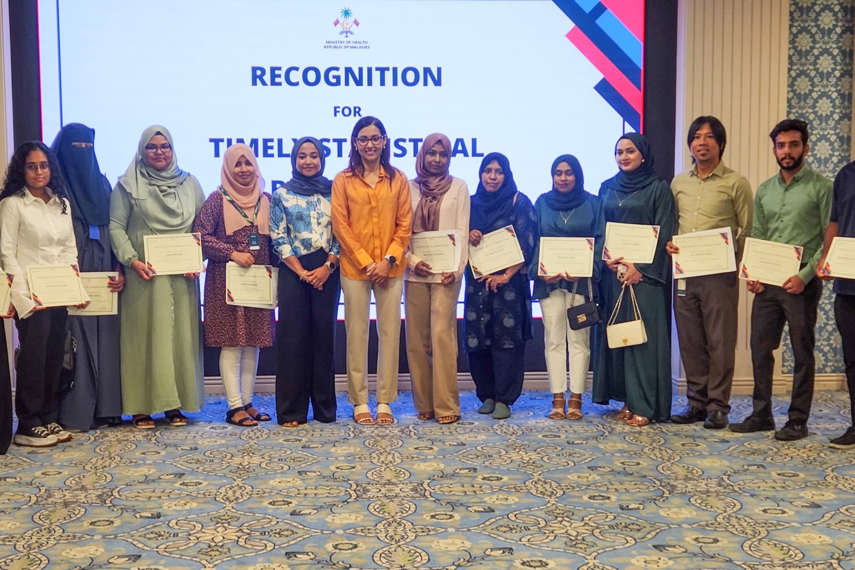 ހެލްތު މިނިސްޓްރީގައި ބުރާސްފަތި ދުވަހު ބޭއްވުނު ޚާއްޞަ ރަސްމިއްޔާތެއްގައި ސެޓްފިކެޓް ހަވާލުކޮށްދެއްވީ މިނިސްޓްރީގެ ޕާރމަނަންޓް ސެކްރެޓަރީ ޢާއިޝަތު ސާމިޔާ އެވެ.