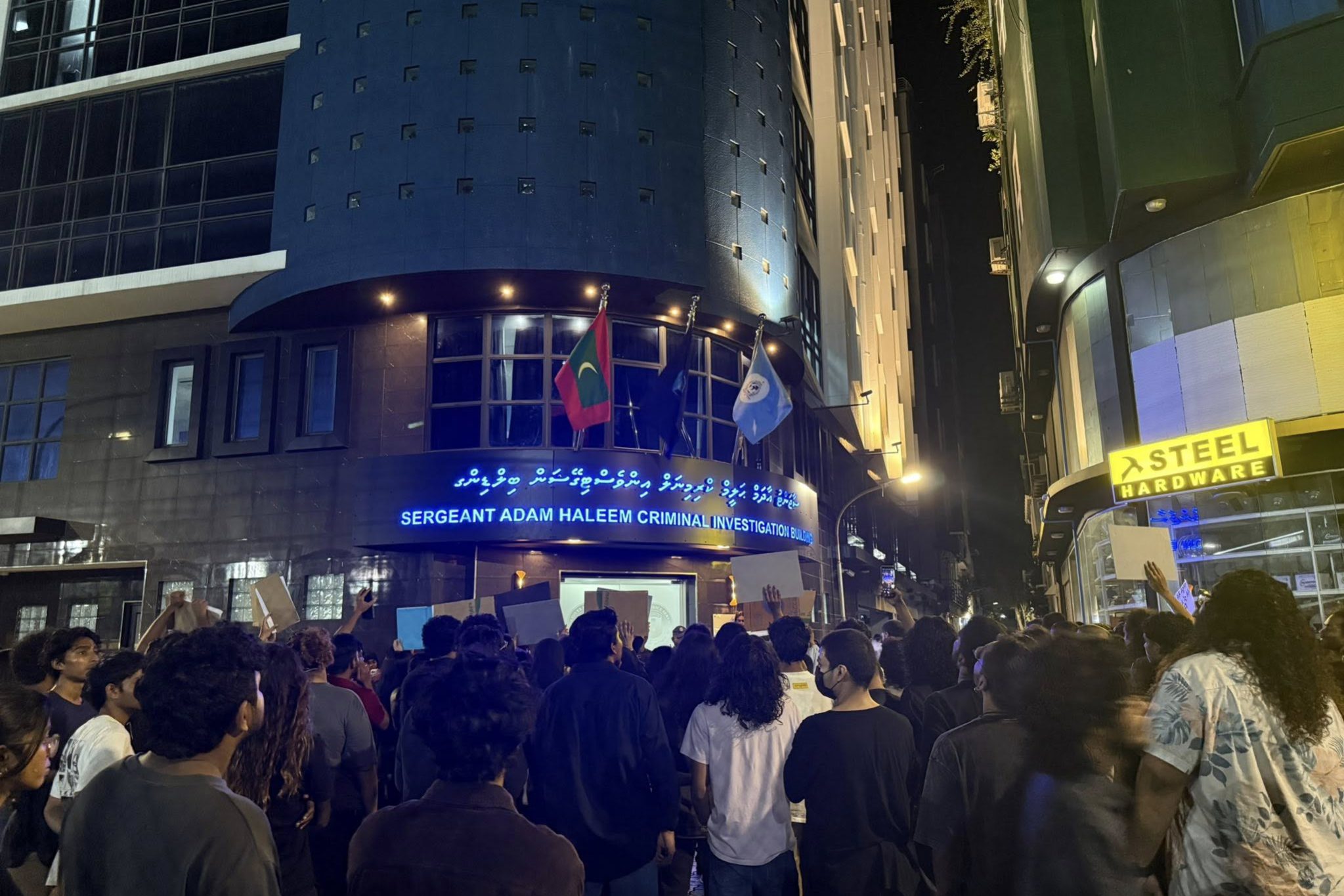 ހުކުރު ދުވަހުގެ ރޭ ހެންވޭރުގައި ހުރި ގުދަނެއްގެ ފުރާޅުމައްޗަށް ވެއްޓުނު 21 އަހަރުގެ ހައްވާ ޔުމްނު ރަޝީދުއަށް އިންސާފު ހޯދައިދޭން ގޮވާލާ ފުލުހުންގެ "އާދަމް ހަލީމް ކްރިމިނަލް އިންވެސްޓިގޭޝަން ބިލްޑިން" ކުރިމަތީގައި ގިނަ ޒުވާނުންތަކެއް މުޒާހަރާ ކޮށްފި އެވެ.