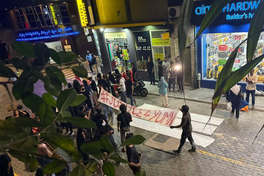 މާލޭގެ އިމާރާތެއްގެ ނުވަ ވަނަ ފަންގިފިލާއިން ވެއްޓުނު ހައްވާ ޔުމްނު ރަޝީދަށް އިންސާފު ހޯދާދޭން ގޮވާލާ ފުލުހުންގެ "އާދަމް ހަލީމް ކްރިމިނަލް އިންވެސްޓިގޭޝަން ބިލްޑިން" ކުރިމަތީގައި ގިނަ ޒުވާނުންތަކެއް މިރޭ ވެސް މުޒާހަރާ ކޮށްފި އެވެ.