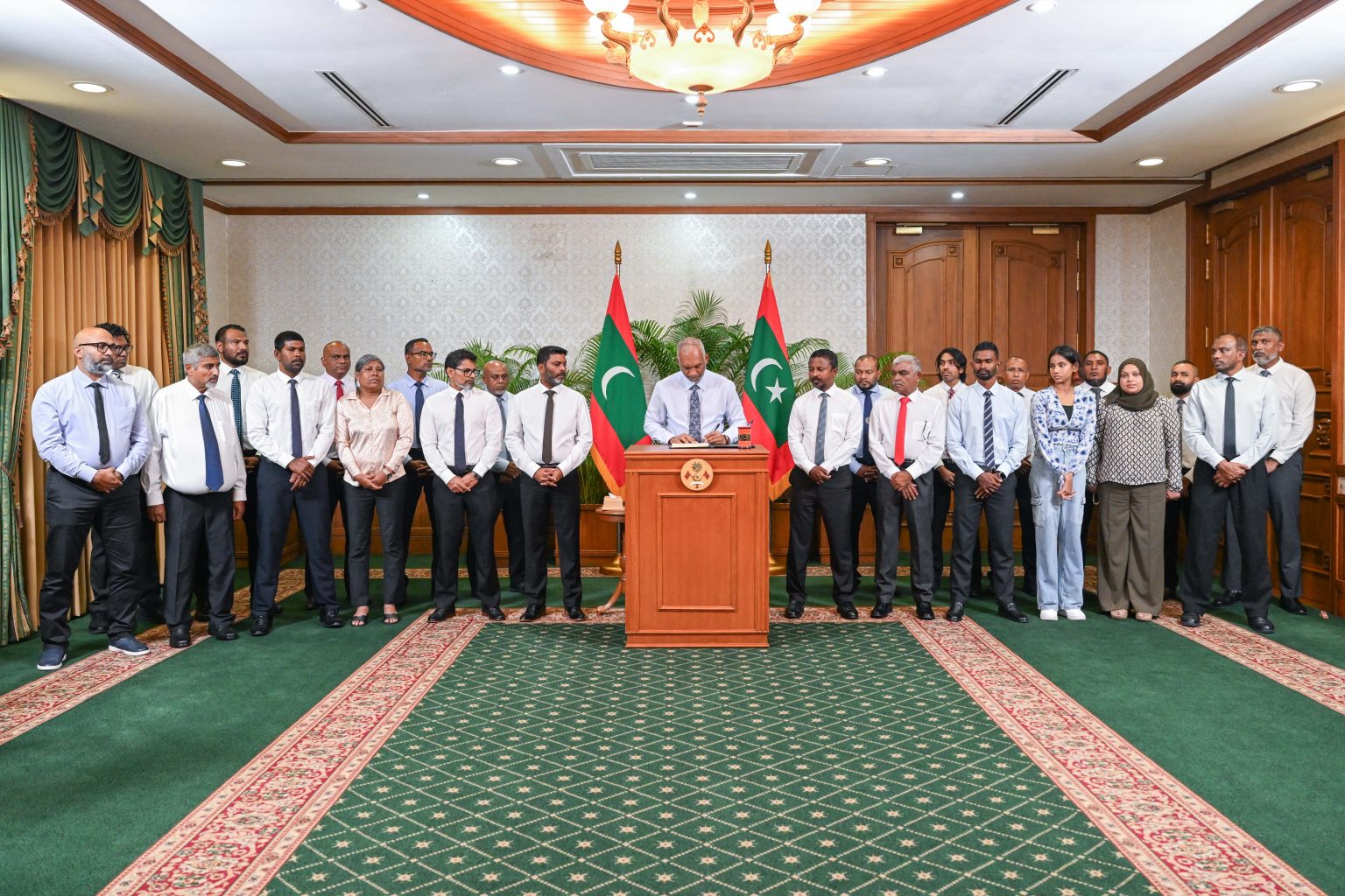 ރައީސުލްޖުމްހޫރިއްޔާގެ އޮފީހުގައި ބިލް ތަސްދީގުކުރެއްވުމަށް ކުރިއަށްދިޔަ މި ރަސްމިއްޔާތުގައި މިނިސްޓަރ އޮފް ސްޕޯޓްސް، ފިޓްނަސް އެންޑް ރެކްރިއޭޝަން އާއި އެޓަރނީ ޖެނެރަލްގެ އިތުރުން ކޮމިޝަނަރ އޮފް ސްޕޯޓްސް، މޯލްޑިވްސް އޮލިމްޕިކް ކޮމިޓީގެ ރައީސް، ނޭޝަނަލް ސްޕޯޓްސް ކައުންސިލްގެ ރައީސް، ކުޅިވަރުގެ ދާއިރާގެއެހާރާއި މިހާރުގެ މަޝްހޫރު ބޭފުޅުން ރައީސުލްޖުމްހޫރިއްޔާގެ އަރިހުގައި ބައިވެރިވެވަޑައިގެންނެވިއެވެ. އަދި ރައީސުލްޖުމްހޫރިއްޔާވަނީ ދިވެހިރާއްޖޭގެ ކުޅިވަރު ޤާނޫނަށް 1 ވަނަ އިޞްލާޙު ގެނައުމުގެ ބިލާ ގުޅޭގޮތުން ނޫސްވެރިން ކުރެއްވި ސުވާލުތަކަށް ޖަވާބުދެއްވައި، މި އިސްލާހާގުޅިގެން އަންނާނެ ބަދަލުތަކާއި ރައްޔިތުންނަށް ލިބޭނެ ފައިދާތަކާގުޅޭ މަޢުލޫމާތު ޙިއްޞާކުރައްވާފައެވެ.