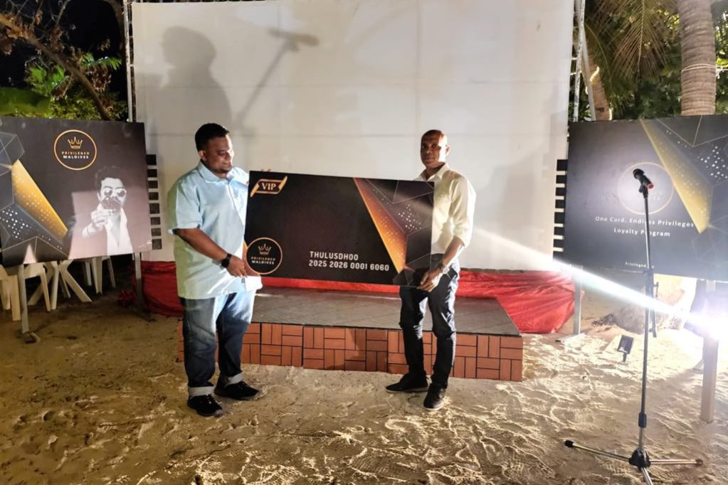 ޕްރޮވިލެޖްޑް މޯލްޑިވްސް ލޯޔަލްޓީ ކާޑް ރީލޯންޗްކޮށްފައި ވަނީ އެކަމަށްޓަކައި ކ. ތުލުސްދޫގައި މިރޭ ބޭއްވި ހާއްސަ ހަފްލާއެއްގައި ތުލުސްދޫ ކައުންސިލްގެ ރައީސް އަސްލަމް މޫސާ އާއި ޕްރިވިލެޖް މޯލްޑިވްސްގެ އަދި ޔޫއައި މޯލްޑިވްސް މެނޭޖިންގ ޑިރެކްޓަރު މޫސާ ނާސިހްއެވެ.