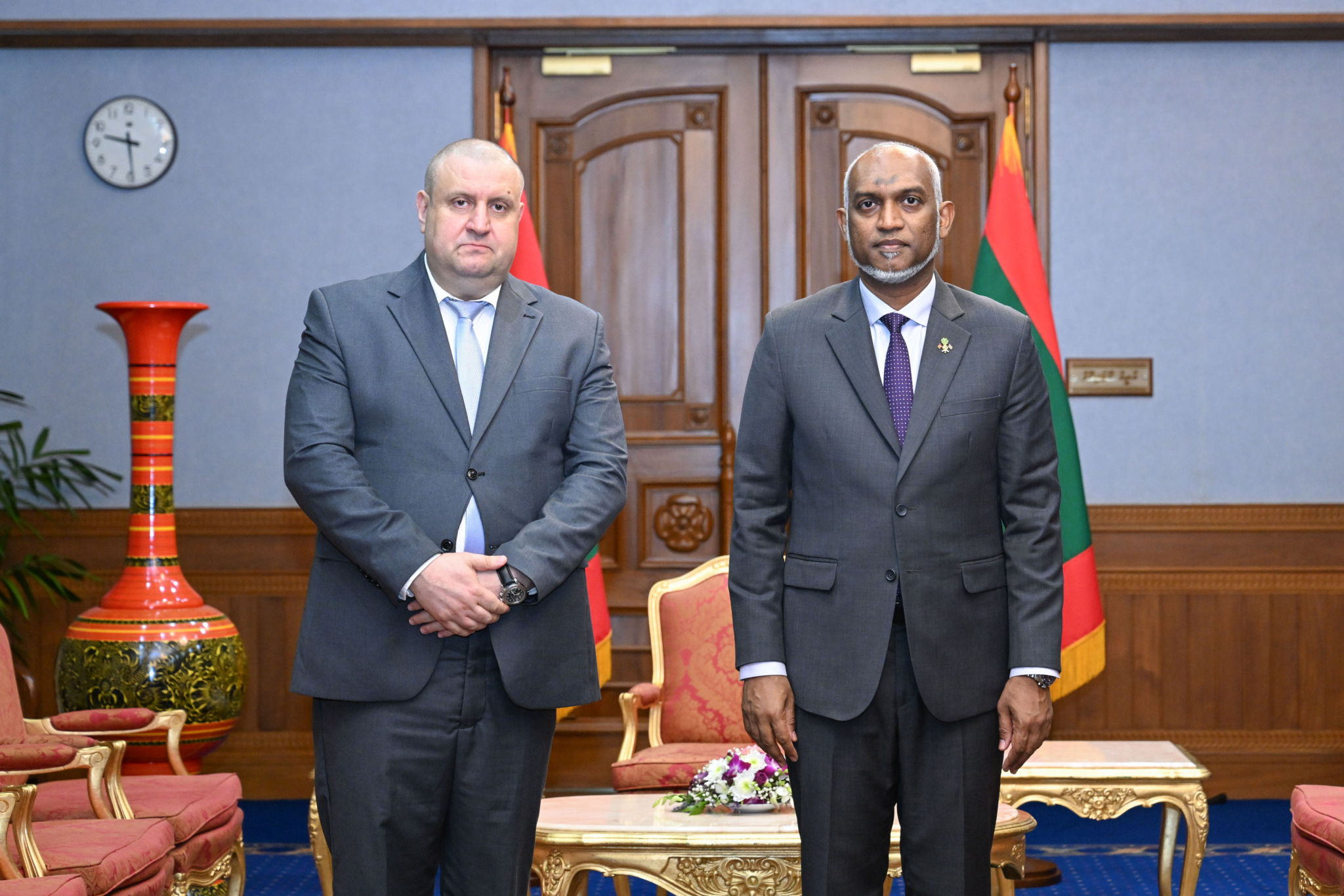 ރައީސަށް އިތުރު ދެ ގައުމެއްގެ ނޮން-ރެސިޑެންޓް ސަފީރުން މިއަދު ފަތްކޮޅު އަރުވާފައިވެ އެވެ. އެއީ އުޒްބެކިސްތާނު ކަނޑައެޅި ސަފީރު، ސަރްދޯ ރުސްތަމްބޭވް އާއި ޑެންމާކުން ކަނޑައެޅި ސަފީރު، ރަސްމުސް އެބިގޯޑް ކްރިސްޓެންސެން އެވެ.