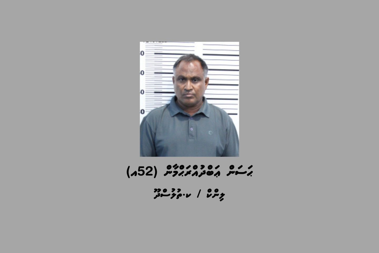 ފުލުހުން ބުނީ އެ މައްސަލައާ ގުޅިގެން ރޭ ހައްޔަރުކުރީ ކ.ތުލުސްދޫ، ހަސަން އަބްދުއްރަޙްމާން، 52، ކަމަށެވެ. (52އ) އޭނަގެ ބަންދާމެދު ގޮތެއް ނިންމުމަށް ކްރިމިނަލް ކޯޓަށް ހާޒިރު ކުރުމުން ޝަރީއަތް ނިމެންދެން ބަންދުކޮށްފައިވާ ކަމަށް ވެސް ފުލުހުން ބުންޏެވެ.