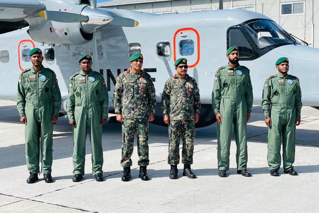 އެމްއެންޑީއެފްގެ 2 ޕައިލެޓުންނަށް ކޯސްޓްގާޑު އޭވިއޭޝަން ސްކޮޑްރަންގެ ބެޖު ހަވާލުކޮށްދެއްވީ ޗީފް އޮފް ޑިފެންސް ފޯސް މޭޖާ ޖެނެރަލް އަބްދުﷲ ޝަމާލްއެވެ. އެމްއެންޑީއެފްގެ ސިފައިންނަށް ފުރަތަމަ ފަހަރަށް ޑޯނިއާ މަތިންދާ ބޯޓު ދުއްވުމަކީ ލިބުނު ޝަރަފެއް ކަމަށް މޭޖާ ޖެނެރަލް ޝަމާލް ވިދާޅުވިއެވެ. މި ޕައިލެޓުން ތަމްރީންކޮށްދީފައިވަނީ އިންޑިއާގެ ސިފައިން ކަމުން އެމީހުންނަށް ޝަމާލް ވަނީ ޝުކުރު އާދަކުރައްވާފައެވެ.