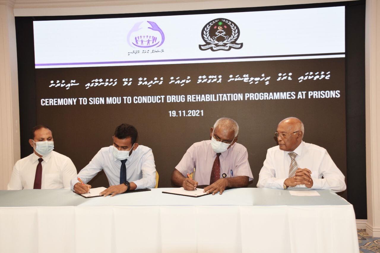 ޖަލުތަކުގައި މަސްތުވާތަކެތީގެ މައްސަލަތަކުގައި ހުކުމް ތަންފީޒު ކުރަމުންދާ ގައިދީންނަށް ހާއްސަކޮށް ޖަލުގައި ޑްރަގް ރިހެބިލިޓޭޝަން ޕްރޮގްރާމެއް ހިންގުމާ ގުޅޭ ގޮތުން މޯލްޑިވްސް ކަރެކްޝަނަލް ސަރވިސް (އެމްސީއެސް) އާއި ނޭޝަނަލް ޑްރަގް އޭޖެންސީ (އެން.ޑީ.އޭ) އާ ދެމެދު އެއްބަސްވުމެއްގައި މިއަދު ސޮއިކޮށްފިއެވެ.