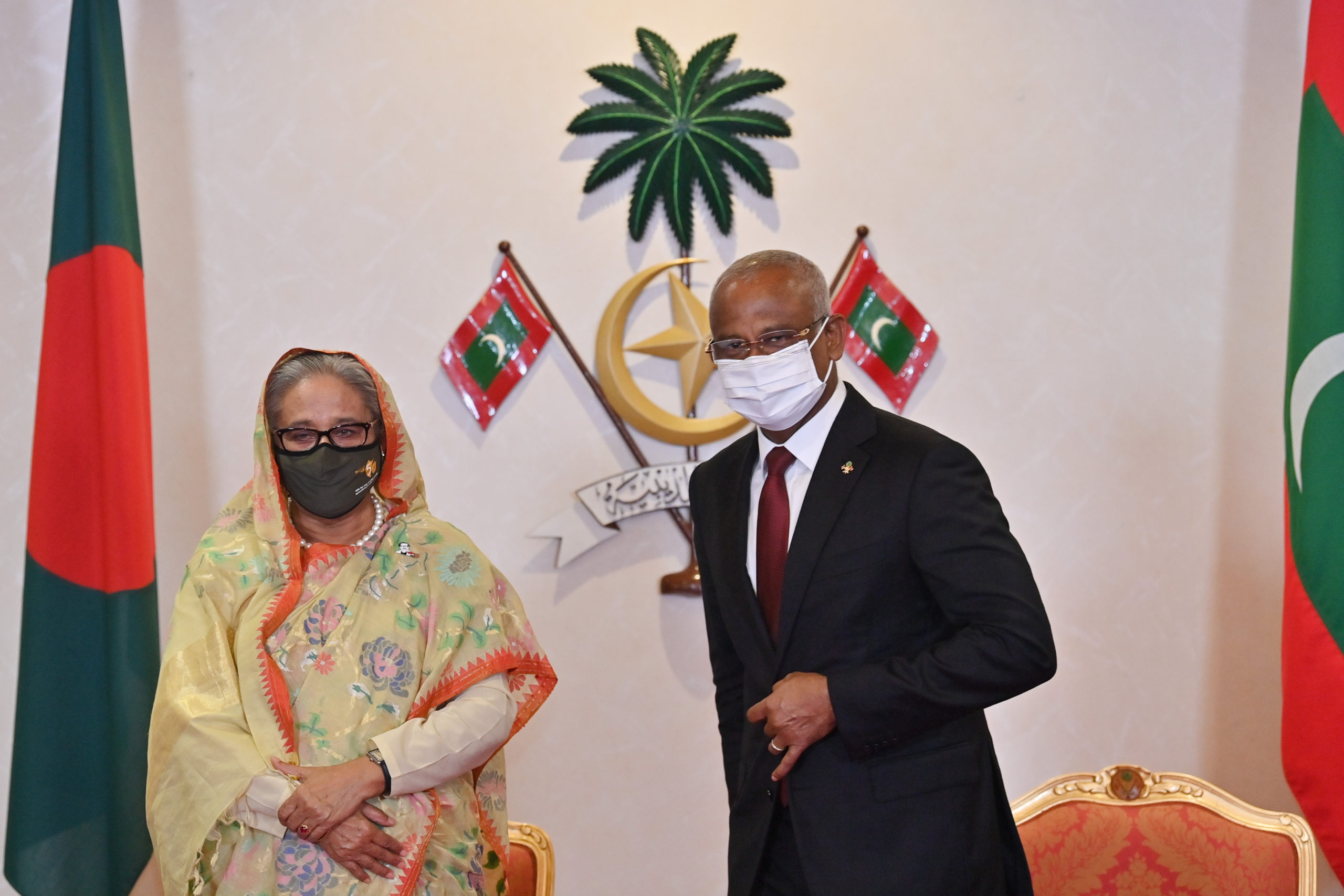 ދިވެހިރާއްޖެއާއި ބަންގްލަދޭޝްއާ ދެމެދު އެއްބަސްވުންތައް ބަދަލުކުރެއްވުމުގެ ކުރިން ރައީސުލްޖުމްހޫރިއްޔާ އާއި ބަންގްލަދޭޝްގެ ބޮޑުވަޒީރު ވަނީ ރައީސުލްޖުމްހޫރިއްޔާގެ އޮފީހުގައި ރަސްމީގޮތުން ބައްދަލުކުރައްވާފައެވެ. އަދި މި ބައްދަލުކުރެއްވުމަށްފަހު، ދެޤައުމުގެ ސަރުކާރުގެ މެދުގައި ވަނީ ރަސްމީ ވާހަކަތައްވެސް ބާއްވަވާފައެވެ.