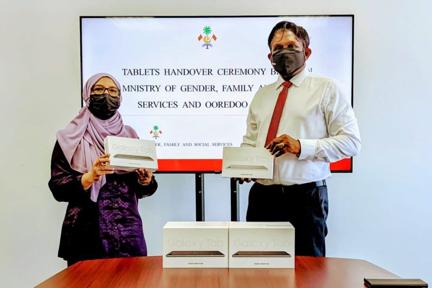 މިނިސްޓްރީގެ ފަރާތުން ޓެބްލެޓްތަކާ ހަވާލުވެވަޑައިގެންނެވީ ޖެންޑާ މިނިސްޓަރު އާއިޝަތު މުހައްމަދުދީދީ އެވެ. އުރީދޫ މޯލްޑިވްސްގެ ފަރާތުން މިނިސްޓްރީއާ ޓެބްލެޓްތައް ހަވާލުކޮށްދެއްވީ، ޗީފް ކޮމާޝަލް އޮފިސަރު ހުސެއިން ނިޔާޒް އެވެ.