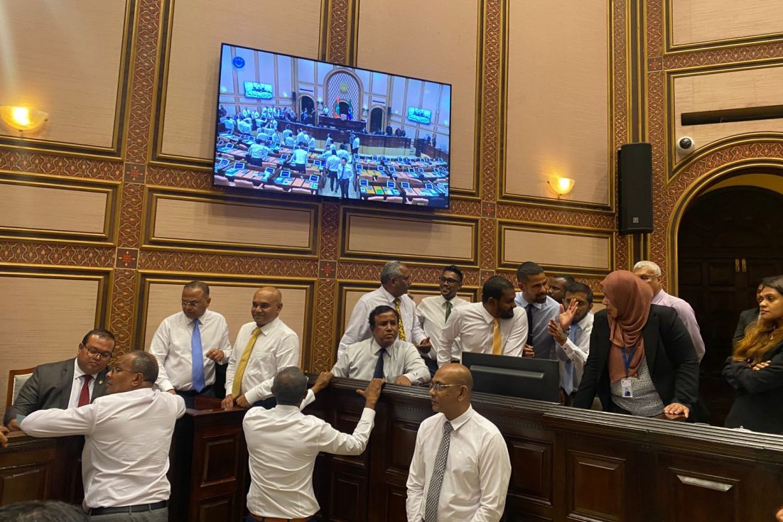 މިރޭގެ ޖަލްސާ ފެށުމަށް ރިޔާސަށް ވަޑައިގަންނަވަން މަޖިލީހުގެ ސަރުކާރަށް ނިސްބަތްވާ މެމްބަރުން ފުރުސަތު ނުދެއްވުމުން މިނިސްޓަރުން އިންނަވާ މޭޒުކޮޅުގައި އަސްލަމް ޖަލްސާ ކުރިޔަށް ގެންދެވޭތޯ މަސައްކަތް ކުރެއްވި އެވެ. ބައެއް މެމްބަރުންގެ ނަންވެސް އިއްވެވިއެވެ. ދެވަނަ ފަހަރަށް މިރޭ ޖަލްސާ ފެށިއިރު މަޖިލީހުގެ ރައީސް އަސްލަމް ވަށައިގެން ސިފައިންނާއި އެމްޑީޕީގެ މެންބަރުން ތިއްބެވި އެވެ.