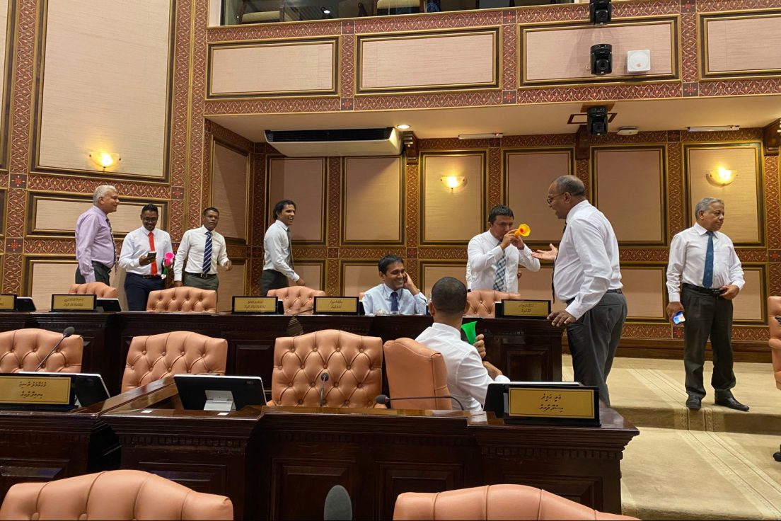 އިއްޔެ ބޭއްވި މަޖިލީހުގެ ޖަލްސާގައި ވެސް ވަޒީރުންނަށް ރުހުން ދިނުމަށް ޖަލްސާ ބޭއްވުމަށް މަސައްކަތް ކުރި އެވެ. ނަމަވެސް ސަރުކާރުގެ މެމްބަރުން އެކަމަށް ހުރަސް އެޅުމުން ވޯޓުލުން ކުރިއަށް ގެންދެވޭ ގޮތް ވަނީ ނުވެފަ އެވެ.